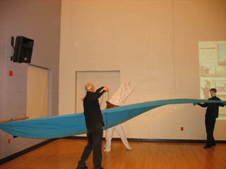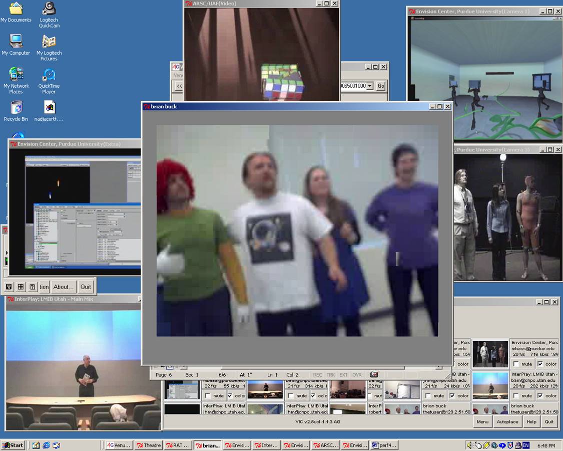 Interplay: (Multisite Access Grid, Video/Jitter) For these four annual performances (coordinated by Another Language/CHPC Univ. Utah) I contributed (variously) performance, Text, Video, Jitter, Visual Content, Local Node Tech/Coordination. We performed at Siggraph and Supercomputing, and received honorable mention for the Peoria Prize in Digital Humanities for Loose Minds in a Box. I loved collaborating with the Art Grid online performance community and hope to get back to a university with a node and connect again. To find out more about past or continuing work with Art Grid visit (Another Language Art Grid.) |